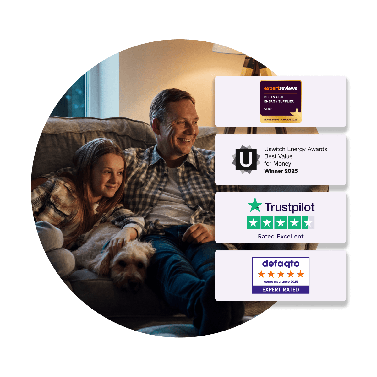 We've been named Best Value Energy Supplier award from Expert Reviews and the Uswitch 2025 energy award winners for Best Value for Money.