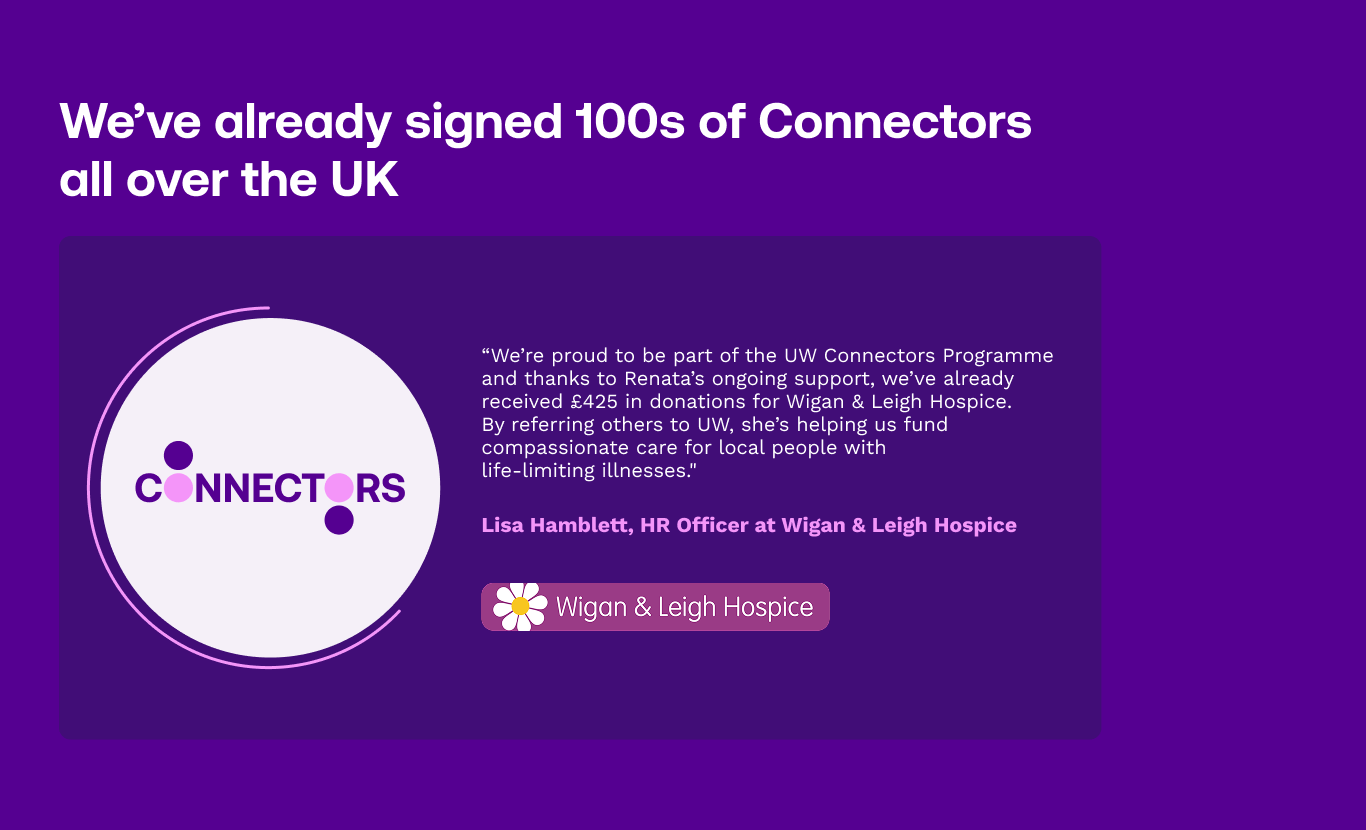 Turn those everyday chats into an extra income with UW Connectors. Whether it’s your workmates, your sports team, or that one group chat that never stops pinging – just drop UW into the convo and we’ll take it from there.